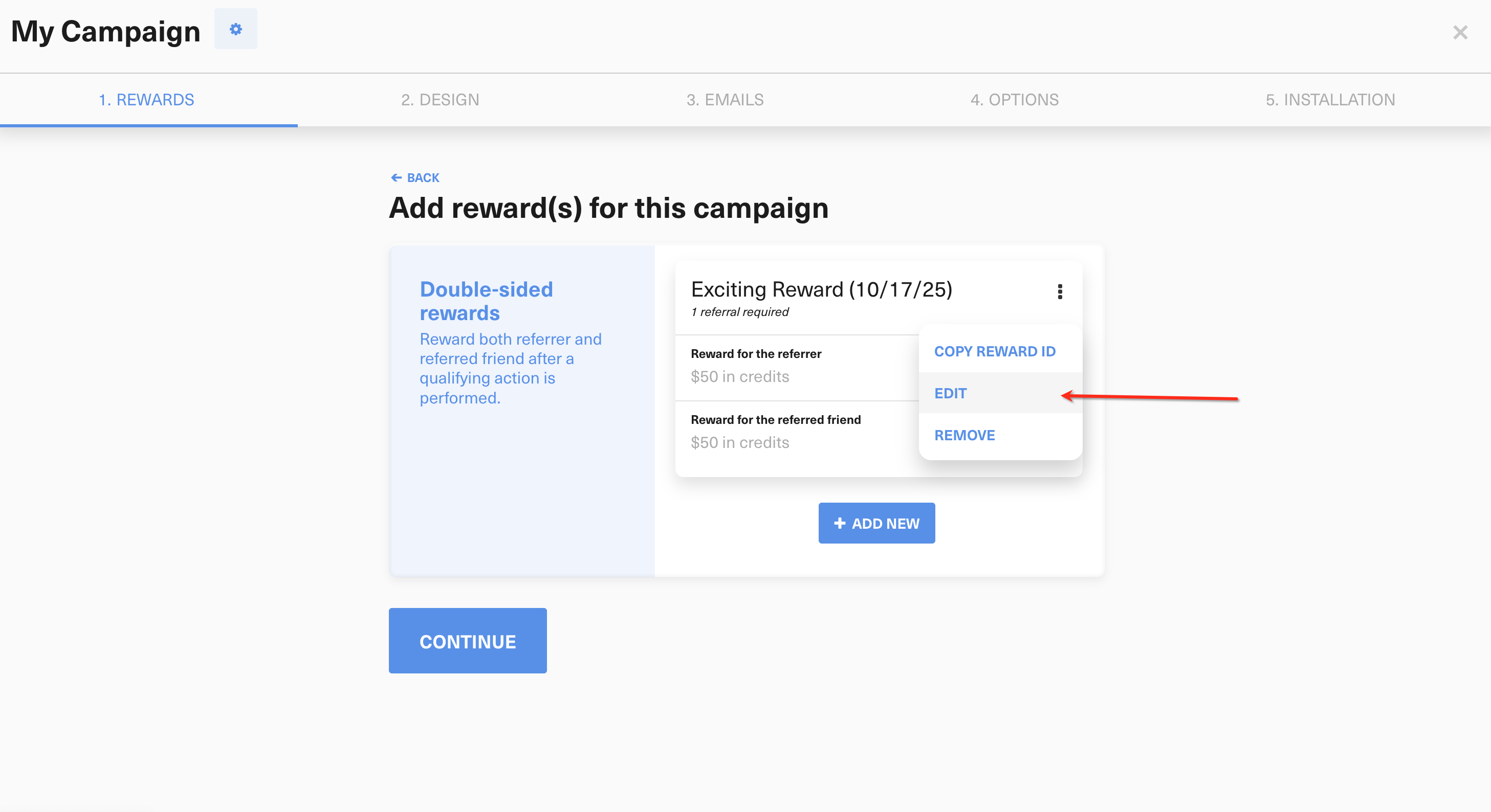**Step 6:** Next to your reward, click the three-dot dropdown menu and then click *Edit.*