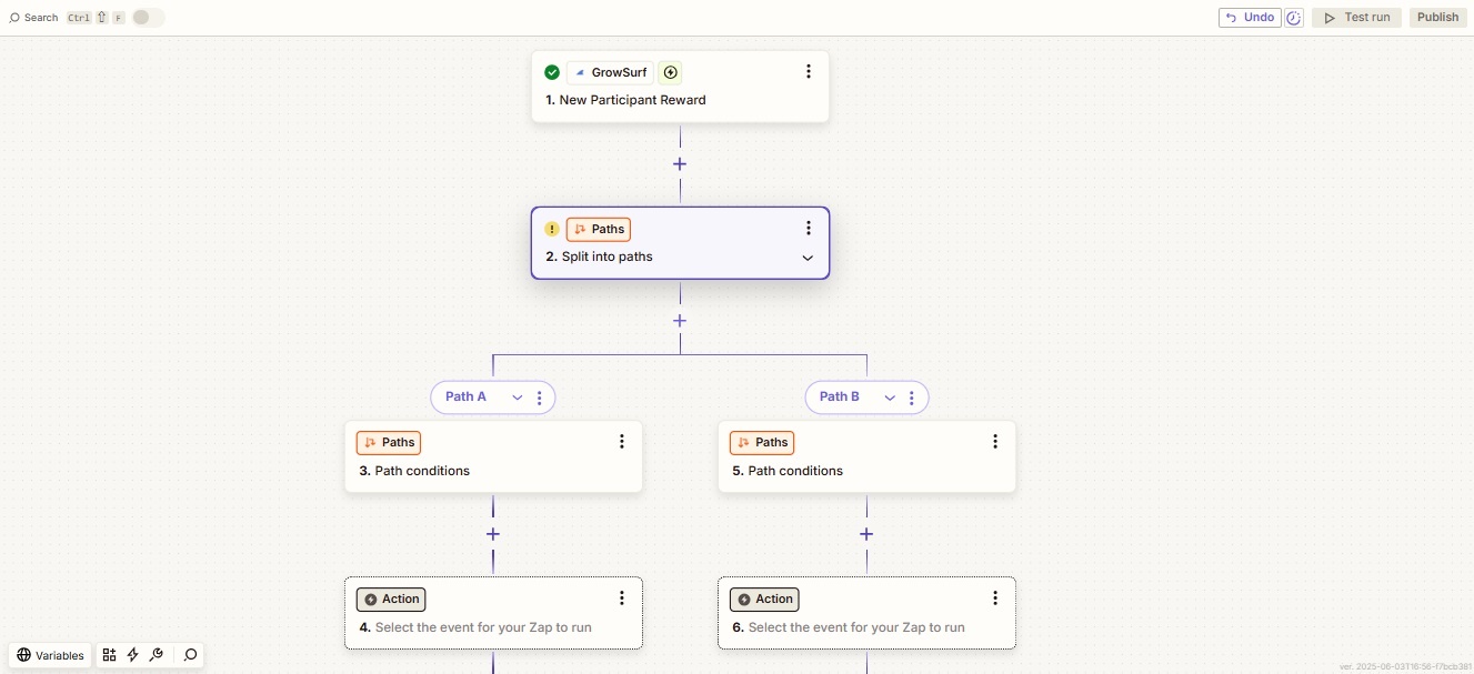 Prior to proceeding, it is crucial to determine whether a [Zap Filter](https://docs.growsurf.com/automate-rewards/zapier/using-filters) is required. Please review the following two questions, and follow the instructions provided if your response is yes. In case your answer is no to both questions, you may skip this step and proceed to [Step 3](#step-3-set-up-the-zap-action-s), which involves configuring the Zap action(s).